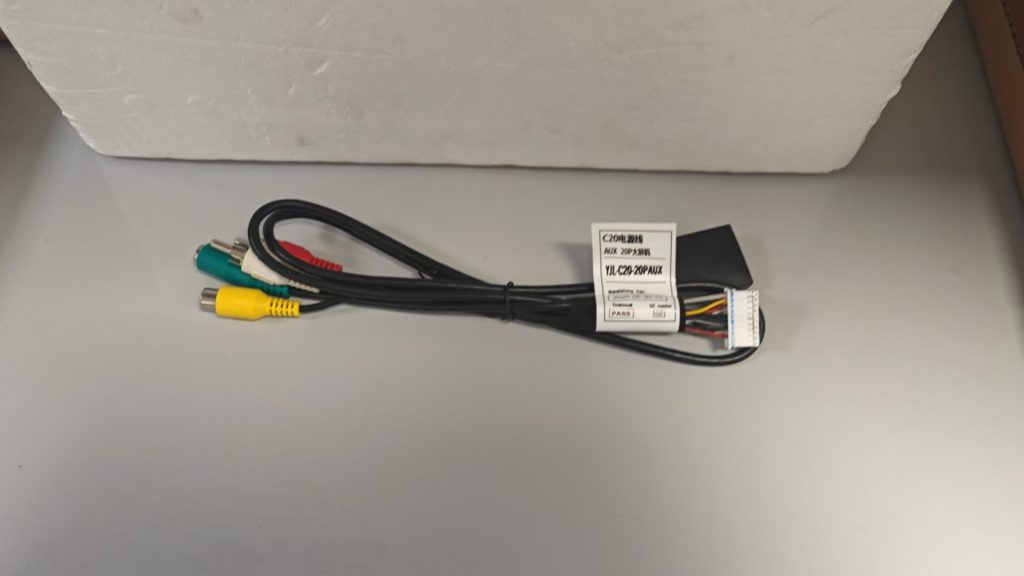 下图箭头是原车喇叭线通过高转低,接进我们的aux音频输入,黄色插头是原车的视频信号,通过aux进外接视频输入实现显示原车画面